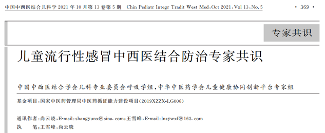 近日,为规范中西医结合儿童流感防治工作,中国中西医结合学会儿科专业委员会呼吸学组、中华中医药学会儿童健康协同创新平台专家组联合组织国内儿科领域的中西医权威专家,共同制定了《儿童流行性感冒中西医结合防治专家共识》(下文简称《共识》),国内儿科学权威刊物《中国中西医结合儿科学》于2021年10月13期第5卷对《共识》进行率先发表,引起国际儿科领域的中西医专家们高度关注,《国际儿科学杂志》2021年10月第10期第48卷将《共识》用中英文双语面向全世界推广,赢得全球儿科医生点赞。